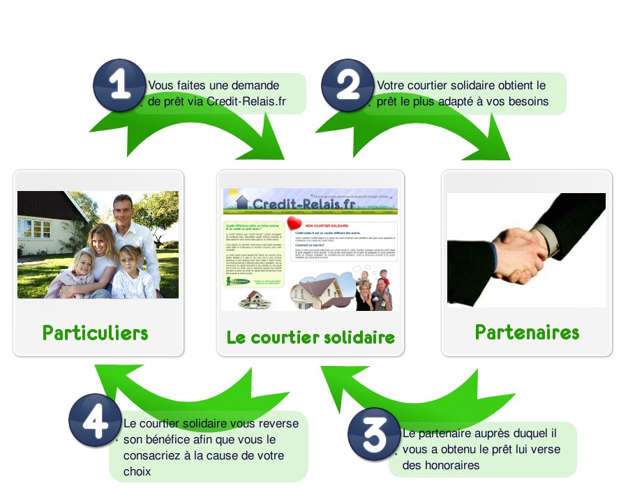Dans le cadre de credit-relais.fr, après avoir obtenu le prêt le plus adapté à vos besoins, nous vous adressons un "chèque solidaire" représentant le bénéfice net des frais et impôts provenant des honoraires versés par les partenaires.